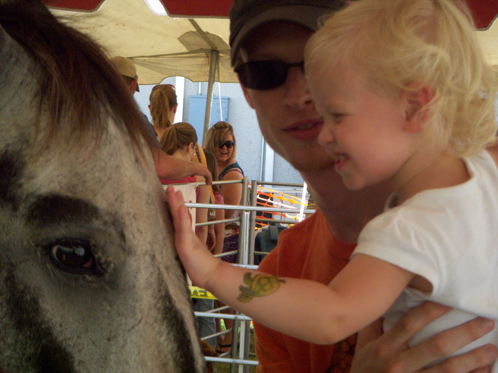 On Sunday we took Addison to the Science Spectrum for their annual, Critterfest. This is a great event for the kids in Lubbock to look and touch animals. Since we do not have a zoo here in town or anything close to it, it is a very big deal! Addison was able see her friend the camel that was at the library at the beginning of the summer. They had a gator show and a tiger show, but we only saw the gator show because the tiger show was out of control with people. She was able to see different reptiles and touched 2 snakes (she described them as "slimy") She petted some giant rabbits and a hamster, they had many different dogs, petting zoo animals, and her best event was the horse back riding. It was only like a 2 minute ride, but she LOVED it! She kept saying YEE-HAW! We had a great Sunday afternoon and we think that Addison had a great time!